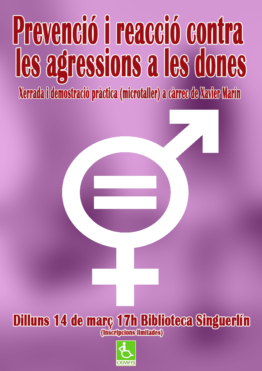 La asociación CEMFIS, entidad miembro de Cocemfe Barcelona, organiza el micro-taller "Prevención y reacción contra las agresiones a las mujeres" el próximo 14 de marzo a las 17 horas en la Biblioteca Singuerlín de Santa Coloma de Gramenet. El micro-taller tratará...