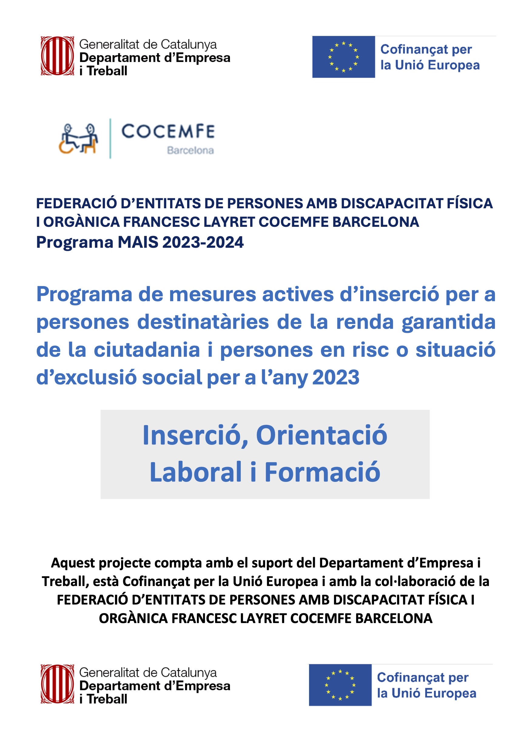 Amb el suport del Departament d’Empresa i Treball de la Generalitat de Catalunya, la Federació d’Entitats de Persones amb Discapacitat Física i Orgànica Francesc Layret COCEMFE Barcelona durà a terme, fins el 30 d’abril de 2024, el projecte MAIS, un programa...