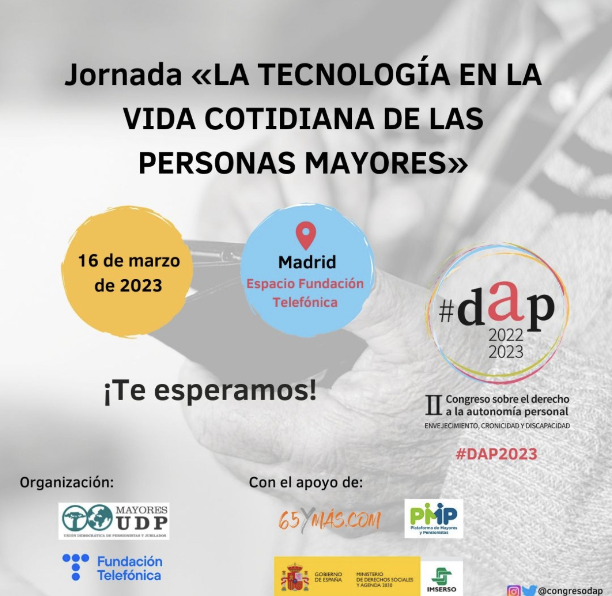 Madrid acollirà el proper 16 de març la tercera sessió del Congrés sobre el Dret a l’Autonomia Personal: ´Tecnologia en la vida quotidiana de les persones grans´. El Congrés, organitzat per la Unió Democràtica de Pensionistes-UDP